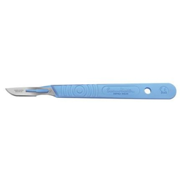 • Skalpele jednorazowe: są pakowane sterylnie, trzonki wykonane są zazwyczaj z plastiku, a ostrza są metalowe. Nie ma możliwości wymiany ostrza, więc ten rodzaj skalpela możemy użyć raz i potem trzeba go wyrzucić. Niektóre modele posiadają wysuwane ostrze, co zwiększa bezpieczeństwo korzystania ze skalpela.